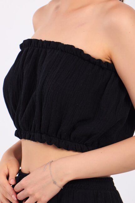Crop Şort Takım Beyaz, temiz ve sofistike bir stil sunar. Beyaz rengin saf ve şık tonu, hafif ve rahat kumaşıyla birleşerek hem görsel bir sadelik hem de üst düzey bir konfor sunar. Bu iki parçalı takım, bir crop top ve şorttan oluşur, her ikisi de çağdaş ve ferah bir siluet sergiler.