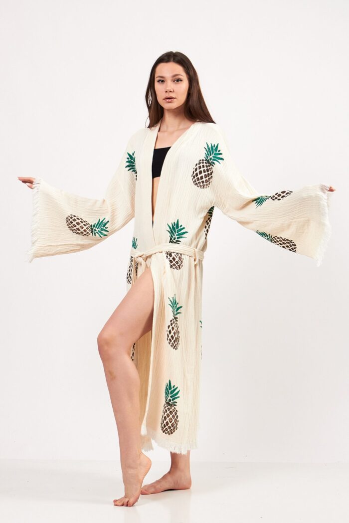 Kimono aus Baumwolle mit Ananas-Muster und Steindruck