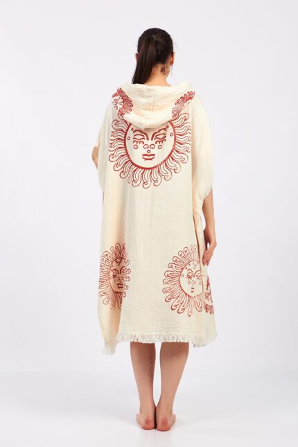 Arinna Kırmızı Taş Baskılı Pamuklu Müslin Surf Pançosu