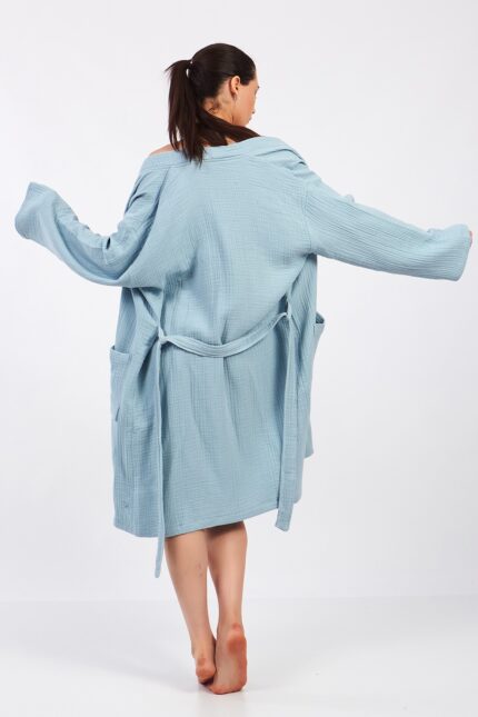Ice Blue Pamuklu Müslin Bornoz